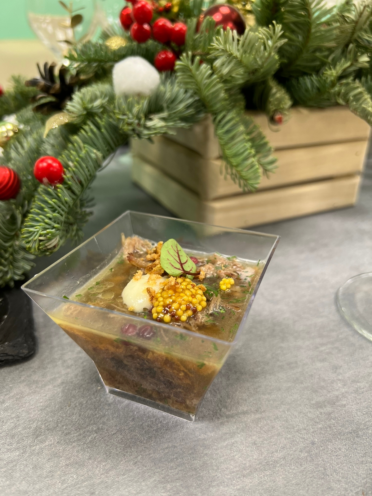 Заливное из судака и лосося с черной икрой и зернистой горчицей