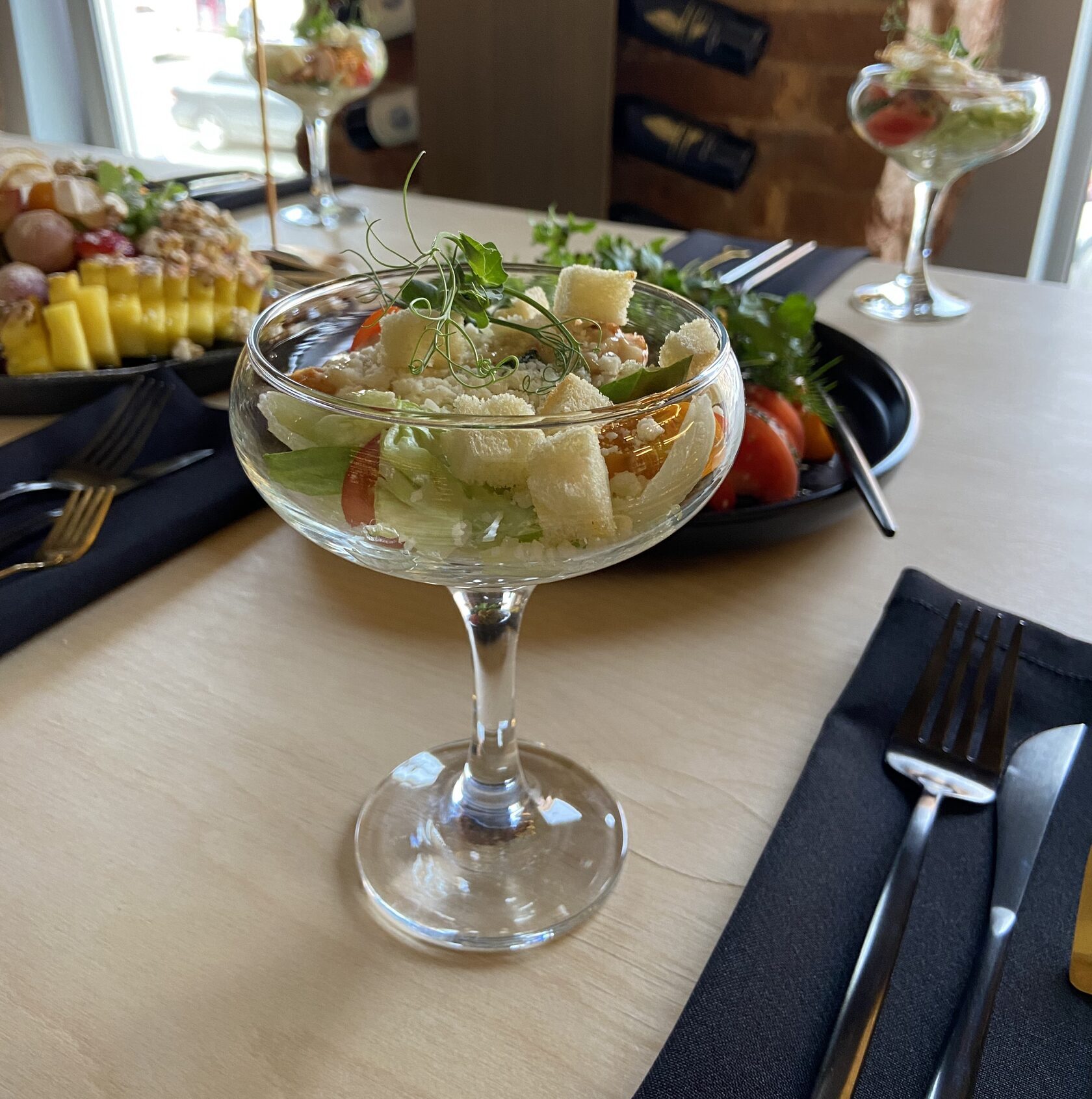 Мини-салат с креветкой гриль, авокадо и соусом Манго