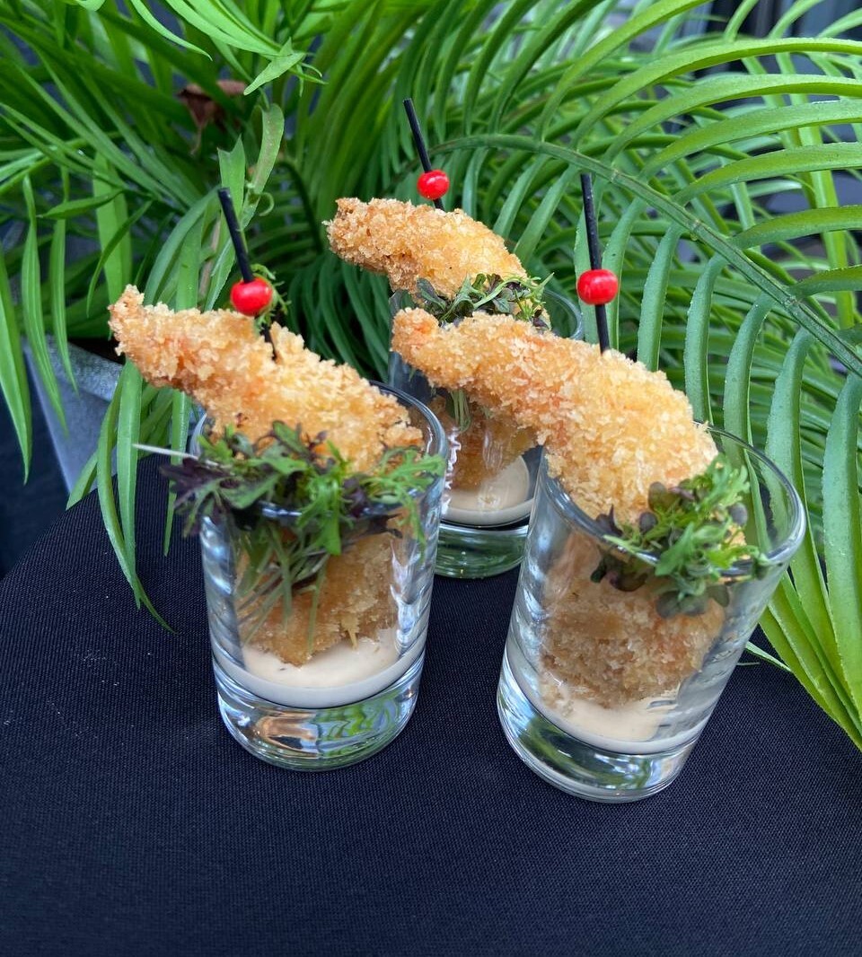 Шот с цыпленком Тандури и соусом сладкий Чили