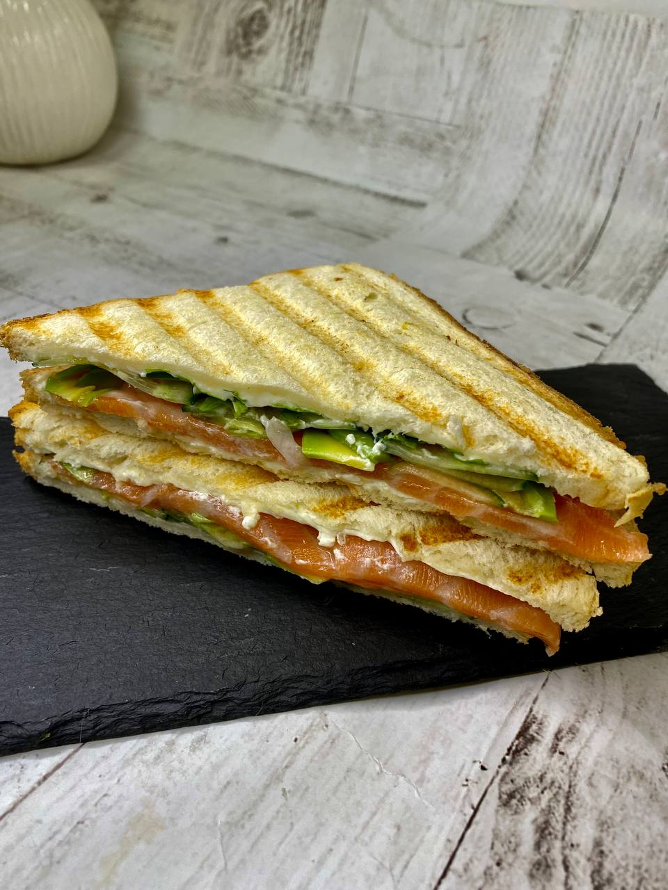 Сэндвич с ветчиной, сыром, листьями салата и огурцом