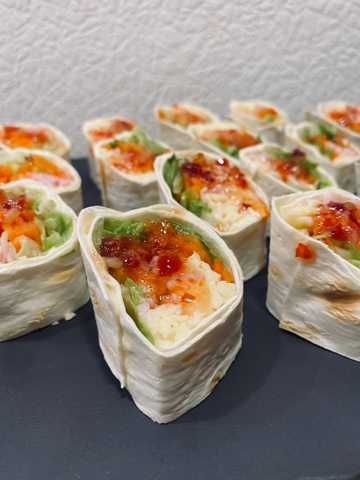 Блинный рулет с слабосоленым лососем и мягким сыром