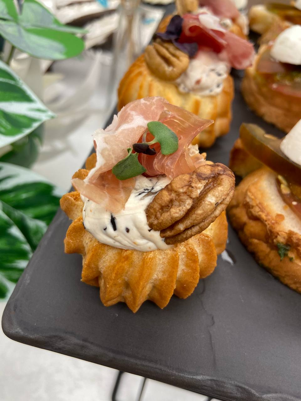 Канапе с сыром камамбер, мятой, орехами и клюквой